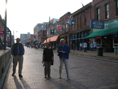 May 23 - Friday - Our Memphis and Braden experience was so nice. Thursday was our day to relax. It started with a yummy breakfast cooked for us by Jack. Betsy and I took a 3-mile walk in the company of 3 neighborhood dogs who saw us and followed us all the way home. We relaxed and enjoyed conversation with Jack and Betsy. I learned so much about farming from Jack. Later in the afternoon Jack and Betsy showed us around Memphis. We stopped at the Peabody Hotel and had drinks while waiting for the amusing tourist attraction the hotel has. There are some ducks that live in the "Duck Palace" on the roof of the hotel. The duck master has the job of marching them to the elevator each morning and downstairs to the fountain in the grand lobby where they spend the day. At precisely 5 pm, the duck master arrives, rolls out a red carpet, coaxes the ducks out of the pool, and they parade back to the elevator and go back to their home on the roof. Our next stop was the Rendezvous for appetizers, and then we spent some time enjoying the music and sights of Beale Street. We then had a wonderful dinner at Grisanti's.