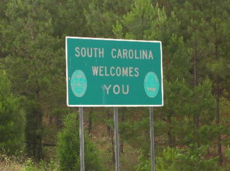May 29 - Thursday - This was a wonderful day! The ride was easy today. The roads were easy to find and they had very light traffic. I stopped in the town of Hartwell to look around. Again I found some interesting shops and nice people to talk to. Just after we crossed the Savannah River, we were in South Carolina. We stopped at a boat landing near the river and had our lunch. The weather was good enough and we were only about 30 or so miles from Donalds, so we decided that I would just go ahead and not have any more stops. Tom's arrival a few hours later was such fun. His sister Jane had told all of the family and close friends the approximate arrival time, and all of them that could came to the house to watch Tom pull in. There were balloons on a post outside the house and a welcome banner on the house. There were reporters from 2 of the area newspapers there also who took pictures and interviewed us. As we saw the speck of red and orange coming closer, everyone came out to the lawn and applauded. It was so much fun. That evening Jane served us and the immediate family a delicious dinner. We will spend about 2 weeks here in Donalds visiting friends and family. We will not be doing journals during these 2 weeks. When we leave here, we plan 2 1/2 days of biking to get to Charleston and will do journals those 3 days, and then that will be the end of the biking adventure and journals.